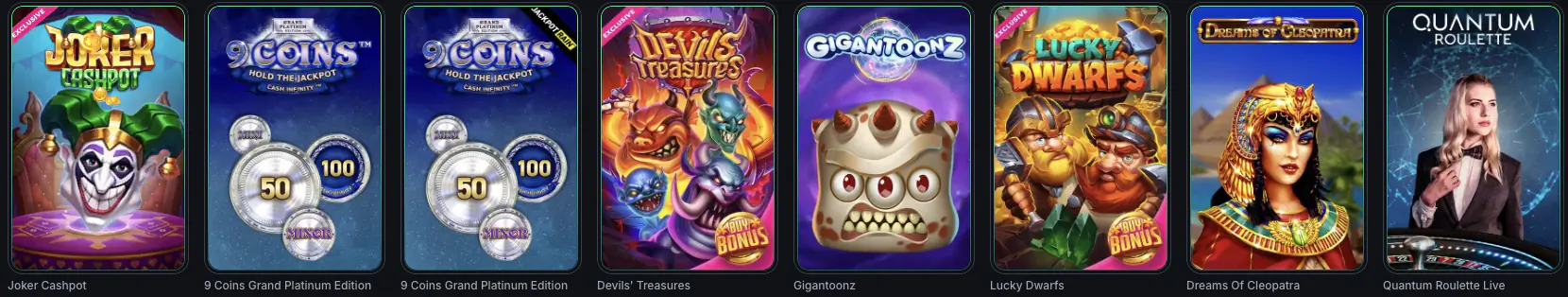 Tenemos la mejor oferta en juegos online que encontrarás en la industria. Solo lo mejor de lo mejor, los más populares, divertidos y entretenidos. Así que siéntate a disfrutar de tus apuestas online en KinBet Casino.